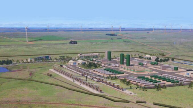 De acuerdo a un informe difundido por Canal 5 Uruguay, el proyecto fue presentado para su análisis de viabilidad ambiental bajo la dirección de la ingeniera civil Griselda Castagnino y la empresa SEG Ingenieros. En esa instancia se detalló que el emprendimiento incluye un parque eólico de 33 aerogeneradores, generación solar complementaria, una planta de electrólisis para producir hidrógeno verde y una represa que abastecerá de agua al sistema.